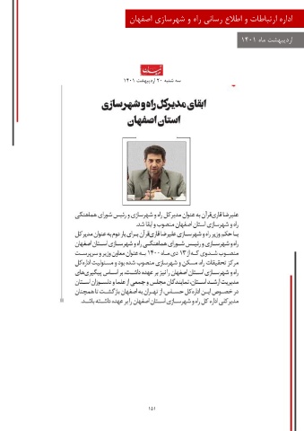 اداره ارتب÷اطات و اطلاع رسانی راه و شهرسازی اصفهان اردیبهشت ماه 1401 سه شنبه 20اردیبهشت 1401 151