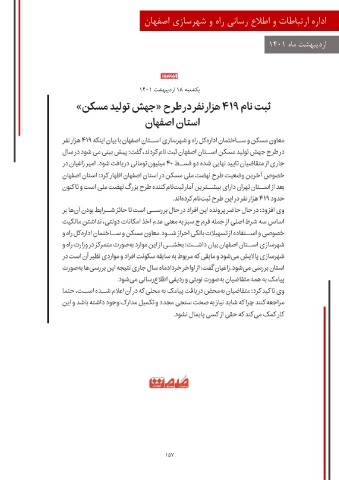 اداره ارتب÷اطات و اطلاع رسانی راه و شهرسازی اصفهان اردیبهشت ماه 1401 یکشنبه 14اردیبهشت 1401 157