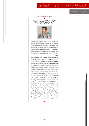 اداره ارتب÷اطات و اطلاع رسانی راه و شهرسازی اصفهان اردیبهشت ماه 1401 شنبه 17اردیبهشت 1401 163