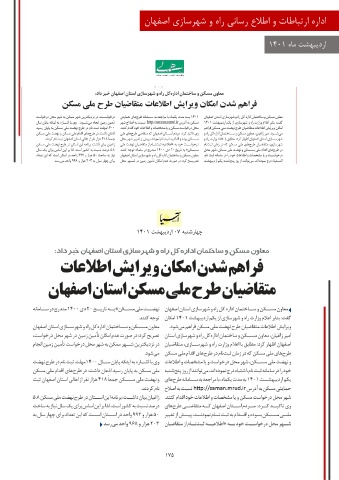 اداره ارتب÷اطات و اطلاع رسانی راه و شهرسازی اصفهان اردیبهشت ماه 1401 چهارشنبه 07اردیبهشت 1401 چهارشنبه 07اردیبهشت 1401 175