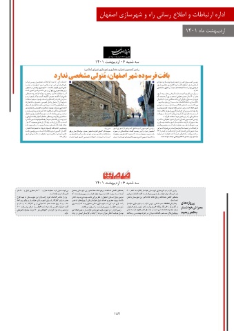 اداره ارتب÷اطات و اطلاع رسانی راه و شهرسازی اصفهان اردیبهشت ماه 1401 سه شنبه 06اردیبهشت 1401 سه شنبه 06اردیبهشت 1401 147