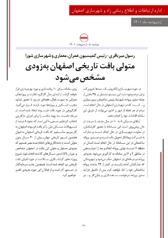 اداره ارتب÷اطات و اطلاع رسانی راه و شهرسازی اصفهان اردیبهشت ماه 1401 دوشنبه 05اردیبهشت 1401 190