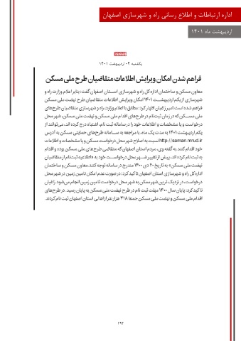اداره ارتب÷اطات و اطلاع رسانی راه و شهرسازی اصفهان اردیبهشت ماه 1401 یکشنبه 04اردیبهشت 1401 193