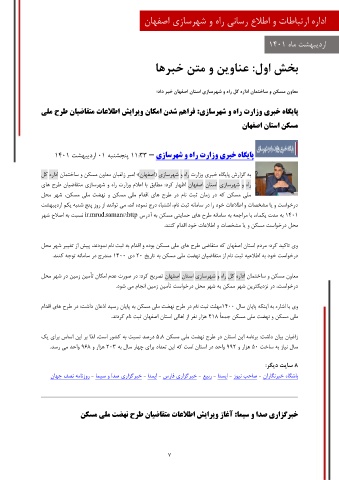 Page 8 - بولتن خبری الکترونیکی راه و شهرسازی استان اصفهان - اردیبشت ماه 1401