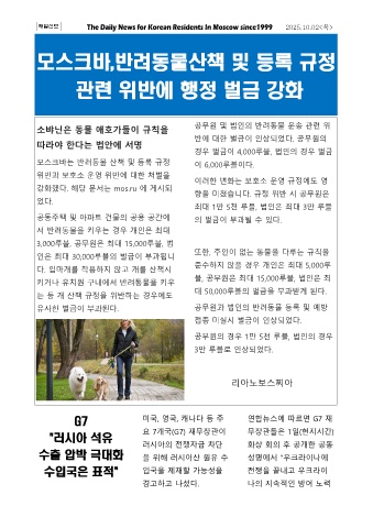 모스크바는 반려동물 산책 및 등록 규정 이 6,000루블이다.