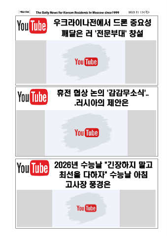 매일신보 2025.11.13<목> 우크라이나전에서 드론 중요성 깨달은 러 '전문부대' 창설 휴전 협상 논의 '감감무소식'.. .러시아의 제안은 2026년 수능날 "긴장하지 말고 최선을 다하자" 수능날 아침 고사장 풍경은