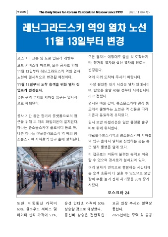 11월 13일부터 레닌그라드스키 역의 열차 변경된다.