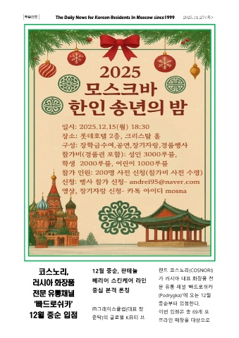 매일신보 2025.11.27<목> 코스노리, 12월 중순, 판테놀 랜드 코스노리(COSNORI) 러시아 화장품 베리어 스킨케어 라인 가 러시아 대표 화장품 전 문 유통 채널 ‘빠드로쉬카 중심 본격 론칭 전문 유통채널 (Podrygka)’에 오는 12월 ‘빠드로쉬카’ 중순부터 입점한다. ㈜그레이스클럽(대표 장 이번 입점은 총 69개 오 12월 중순 입점 준탁)의 글로벌 K뷰티 브 프라인 매장을 대상으로