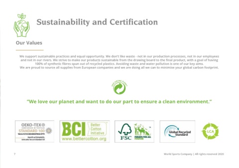 and not in our rivers. We strive to make our products sustainable from the drawing board to the final product, with a goal of having