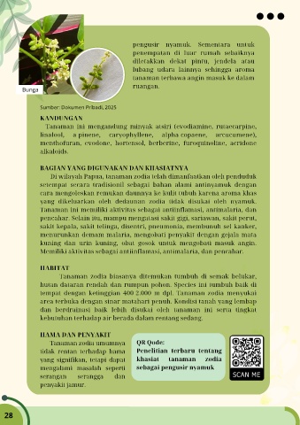 yang dikeluarkan oleh dedaunan zodia tidak disukai oleh nyamuk.