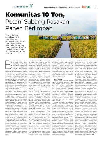 hasil panen optimal. Dengan me- Komunitas 10 Ton. Misalnya, di Jawa Barat meningkatkan produksi, Kegiatan panen raya ini menjadi