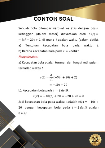 a) Kecepatan bola adalah turunan dari fungsi ketinggian