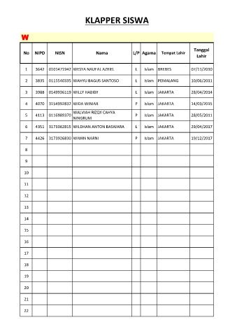 No NIPD NISN Nama L/P Agama Tempat Lahir