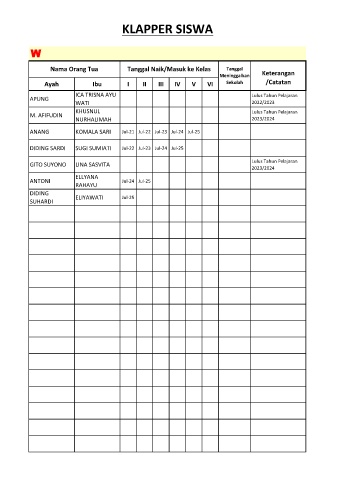 Nama Orang Tua Tanggal Naik/Masuk ke Kelas Tanggal