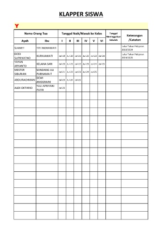 Nama Orang Tua Tanggal Naik/Masuk ke Kelas Tanggal
