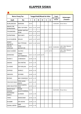 Nama Orang Tua Tanggal Naik/Masuk ke Kelas Tanggal