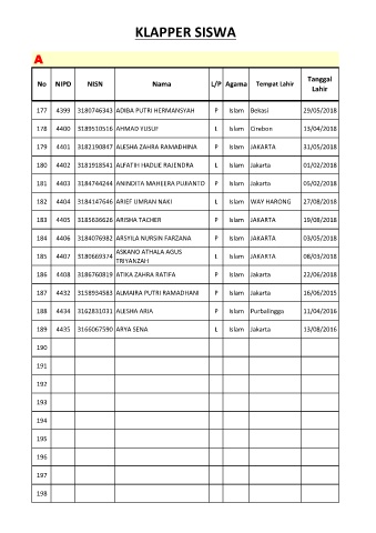 No NIPD NISN Nama L/P Agama Tempat Lahir