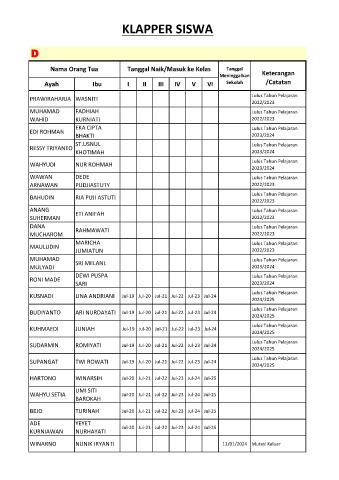 Nama Orang Tua Tanggal Naik/Masuk ke Kelas Tanggal