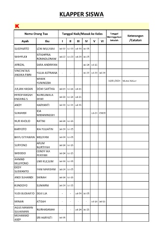Nama Orang Tua Tanggal Naik/Masuk ke Kelas Tanggal