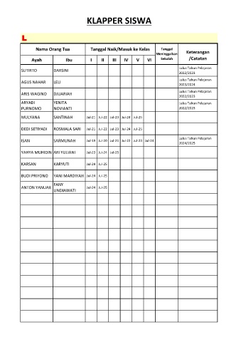 Nama Orang Tua Tanggal Naik/Masuk ke Kelas Tanggal