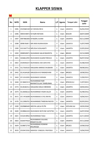 1 3395 0102683169 M FARHAN RIFAI L Islam JAKARTA 05/05/2010