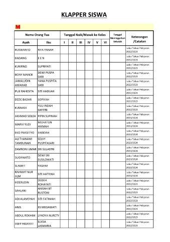 Nama Orang Tua Tanggal Naik/Masuk ke Kelas Tanggal