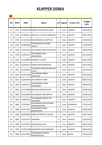 46 3784 0129882811 MAULIDA ZUHRUFA RAMADANI P Islam JAKARTA 30/07/2012