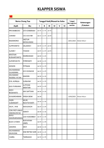 Nama Orang Tua Tanggal Naik/Masuk ke Kelas Tanggal
