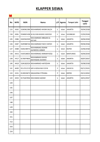133 4365 3186961586 MUHAMMAD AHSAN SALEH L Islam JAKARTA 30/04/2018