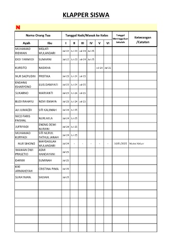 Nama Orang Tua Tanggal Naik/Masuk ke Kelas Tanggal