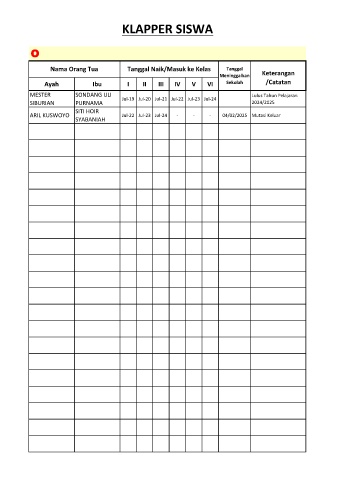 Nama Orang Tua Tanggal Naik/Masuk ke Kelas Tanggal