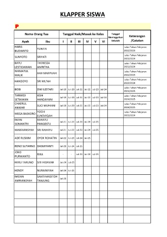 Nama Orang Tua Tanggal Naik/Masuk ke Kelas Tanggal