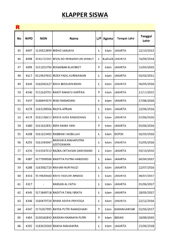 49 4145 3162041627 RAFA IBADURAHMAN L Islam JAKARTA 06/05/2016