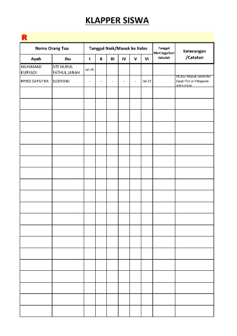 Nama Orang Tua Tanggal Naik/Masuk ke Kelas Tanggal