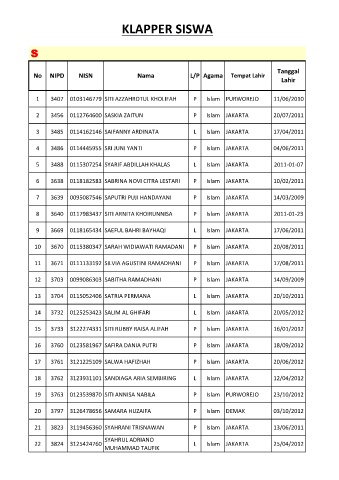 19 3763 0123539870 SITI ANNISA NABILA P Islam PURWOREJO 23/10/2012