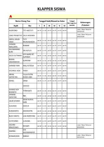 Nama Orang Tua Tanggal Naik/Masuk ke Kelas Tanggal