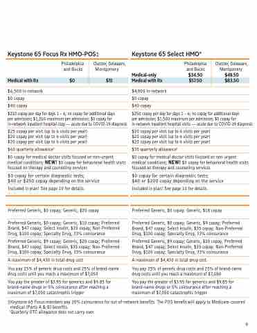 ‡Keystone 65 Focus members pay 20% coinsurance for out-of-network benefits. The POS benefit will apply to Medicare-covered medical (Parts A & B) benefits.
