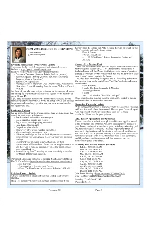 All front yard irrigation is turned off. If you see excess water the Club’s Website. If you are planning a project please make sure to