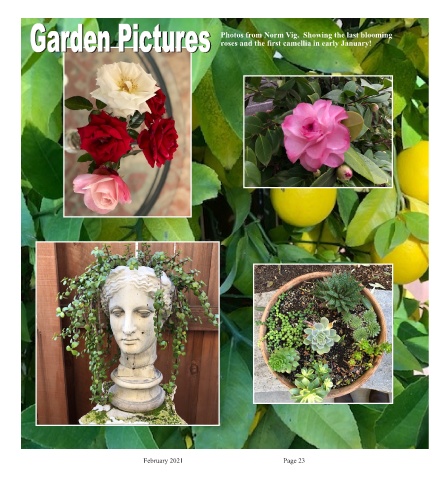 Photos from Norm Vig. Showing the last blooming roses and the first camellia in early January! February 2021 Page 23