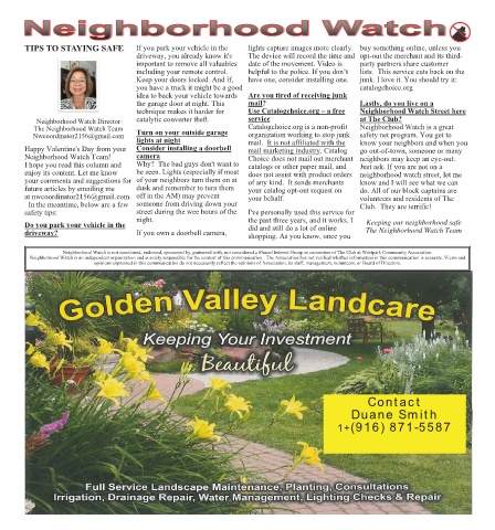Neighborhood Watch Director     catalytic converter theft.         service                             at The Club?