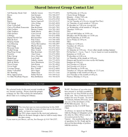 3rd Thursday Book Club Schelly Jensen 916-773-0976 3rd Thursday at 2:30 p.m.
