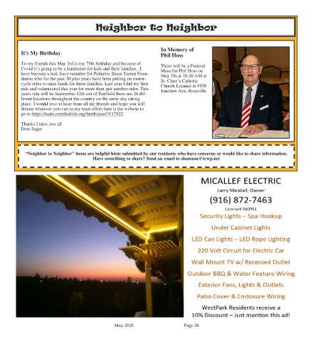 “Neighbor to Neighbor” items are helpful hints submitted by our residents who have concerns or would like to share information.