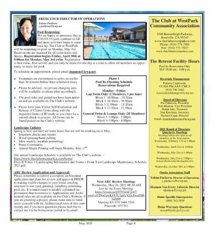 found posted on the Club’s website. Block 6 3:00pm - 4:00pm Email: boardofdirectors@tcwp.net