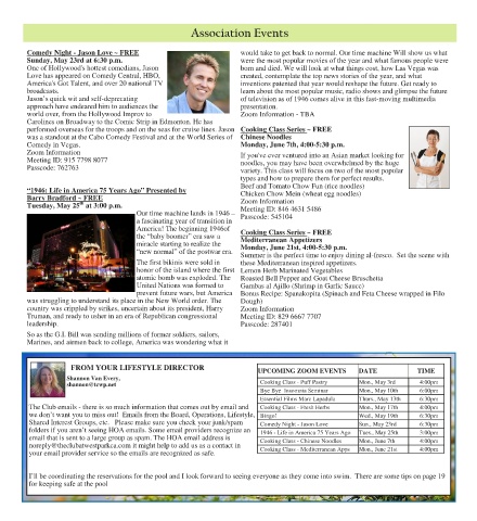 we don’t want you to miss out! Emails from the Board, Operations, Lifestyle, Bingo! Wed., May 19th 6:30pm