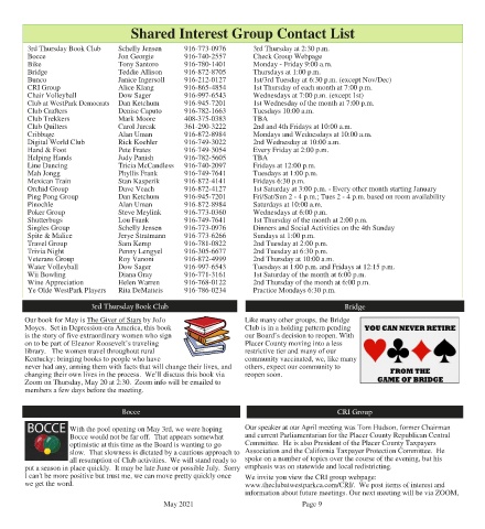 3rd Thursday Book Club Schelly Jensen 916-773-0976 3rd Thursday at 2:30 p.m.