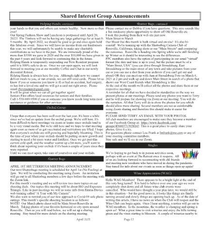 APRIL 1ST SHUTTERBUGS MEETING ANNOUNCEMENT Stay tuned for info about our events as soon as things open up again!