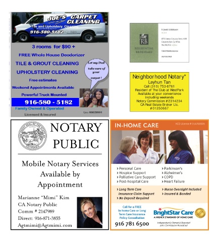 Neighborhood Notary* Leyhun Tan Call (310) 753-8761 Resident of The Club at WestPark Available at your convenience including weekends Notary Commission #2314234 CA Real Estate Broker Lic. #01250667 April 2021 Page 8