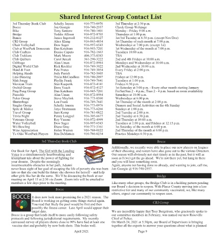 members a few days prior to the meeting. Like many other groups, the Bridge Club is in a holding pattern pending