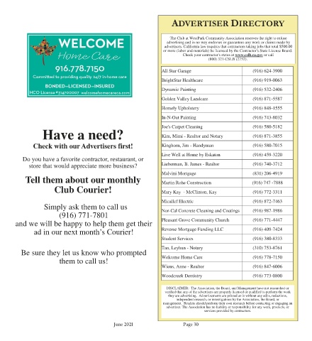 ad in our next month’s Courier! Reverse Mortgage Funding LLC (916) 409-7424