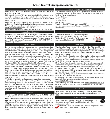 MAH JONGG IS PLAYED ON TUESDAY AFTERNOONS FROM 1-4 The Ping Pong Group is a great way to get in a little exercise and have
